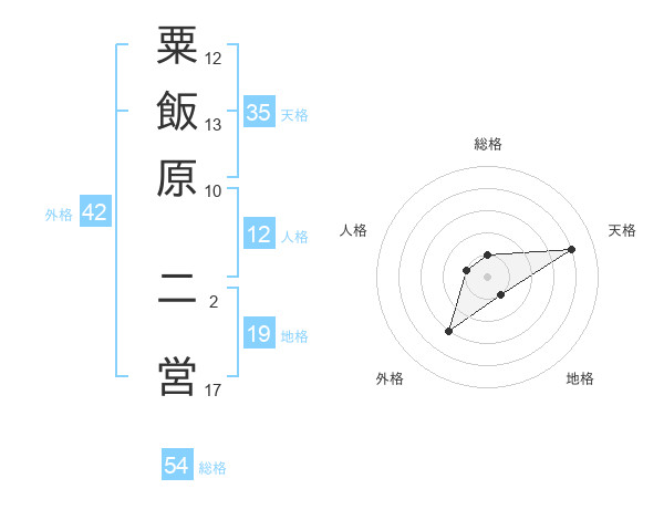 粟飯原 二営さんを姓名の画数から五運を鑑定