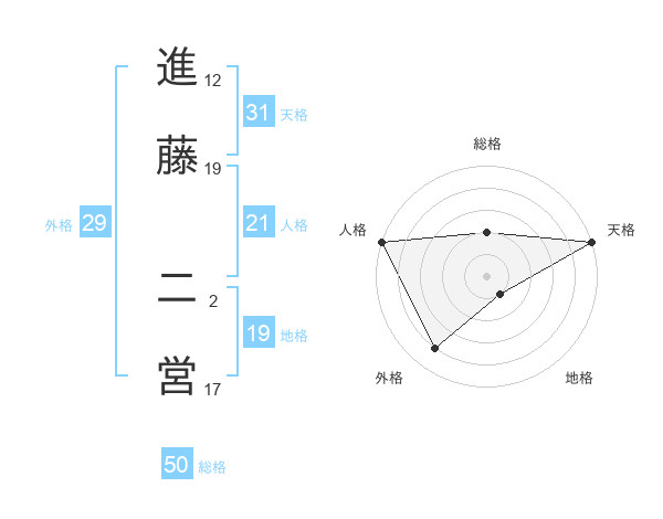 進藤 二営さんの総格は50画の2点!