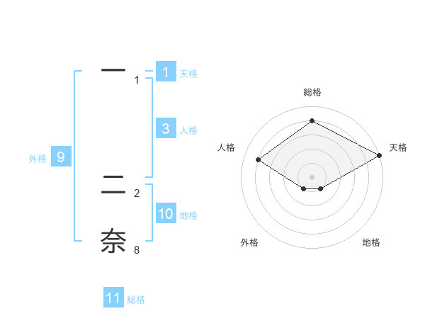 一 二奈さんの総格は11画の4点!