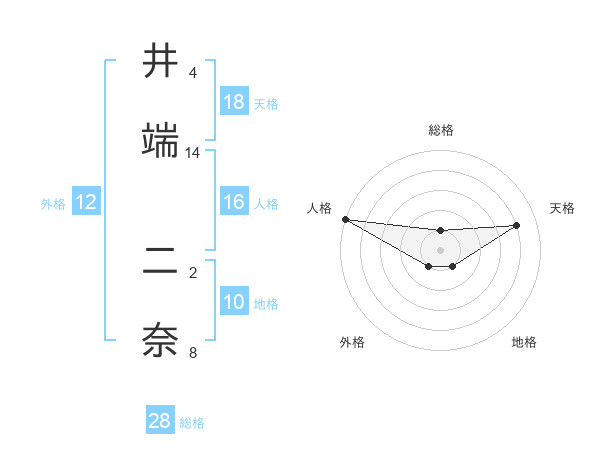 井端 二奈さんの天格は18画の4点!
