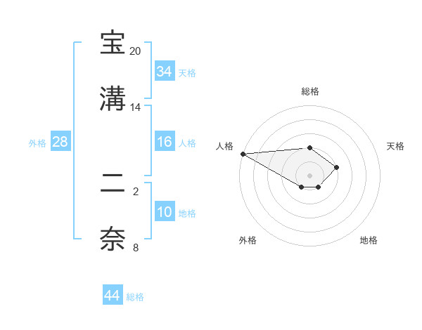 宝溝 二奈さんを姓名の画数から五運を鑑定
