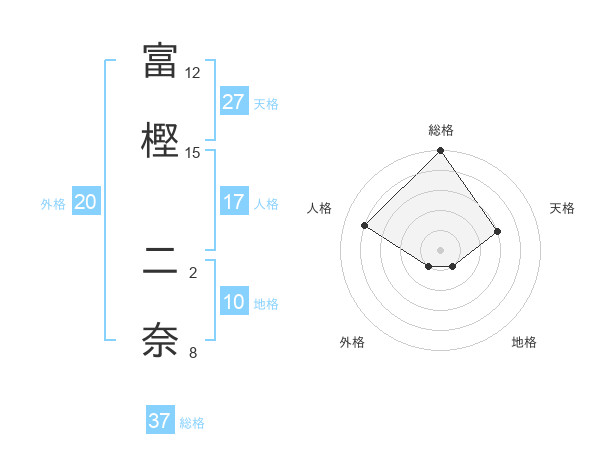 富樫 二奈さんの総格は37画の5点!