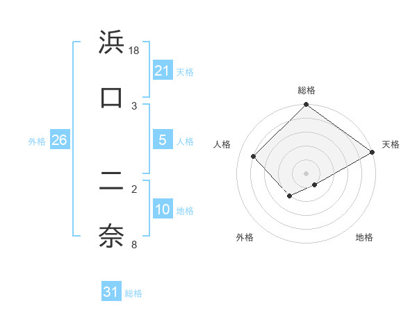 浜口 二奈さんの総格は31画の5点!