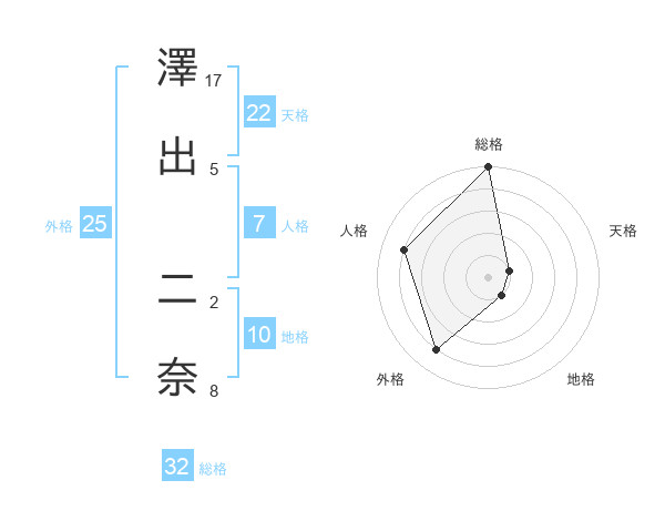 澤出 二奈さんの総格は32画の5点!
