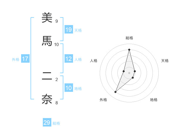 美馬 二奈さんを姓名の画数から五運を鑑定