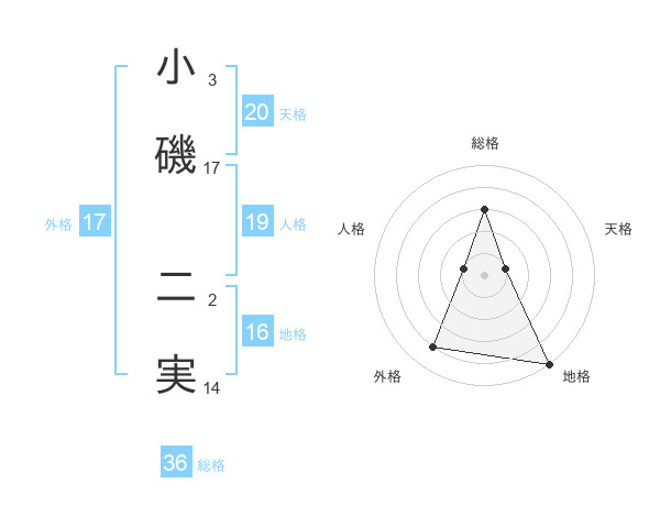 小磯 二実さんの外格は17画の4点!