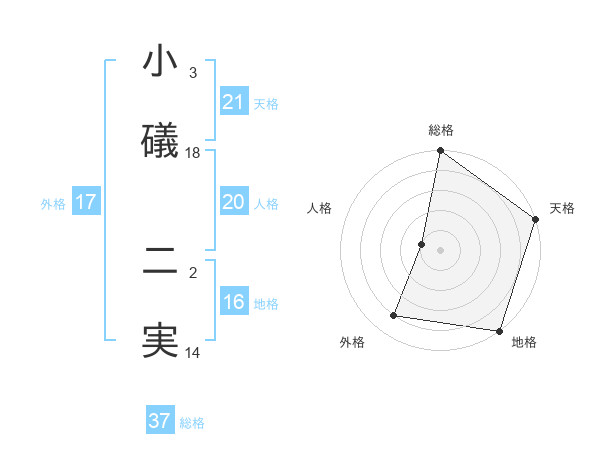 小礒 二実さんの総格は37画の5点!
