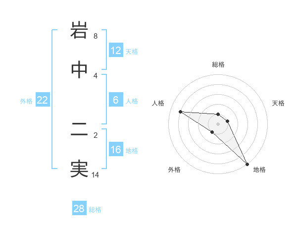 岩中 二実さんの外格は22画の1点!