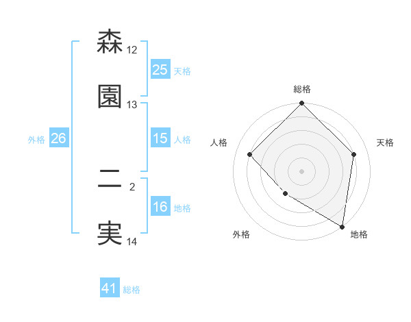 森園 二実さんの総格は41画の5点!