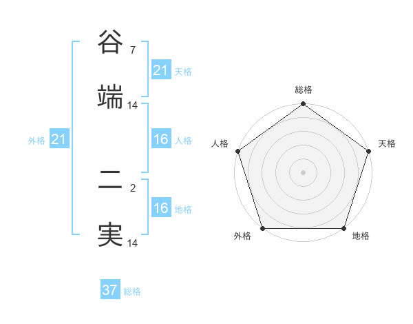 谷端 二実さんの外格は21画の5点!