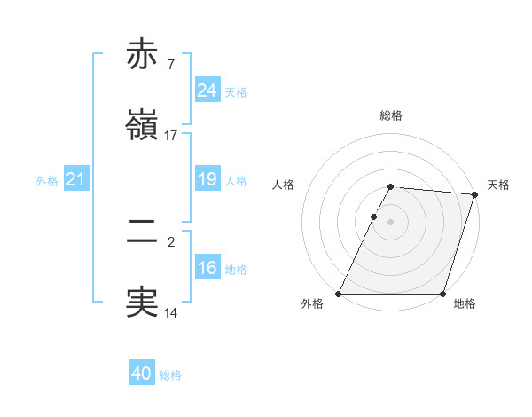 赤嶺 二実さんを姓名の画数から五運を鑑定