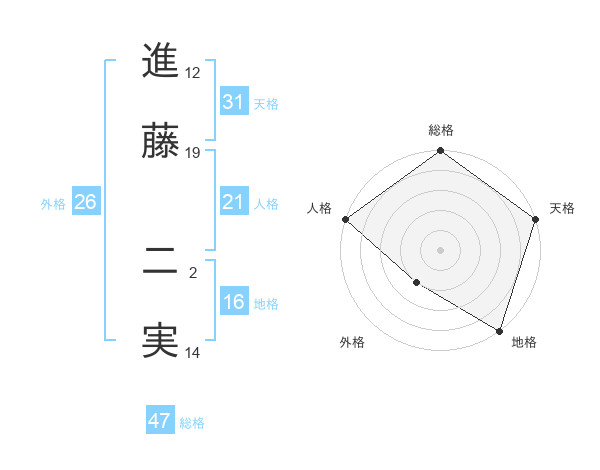 進藤 二実さんの天格は31画の5点!