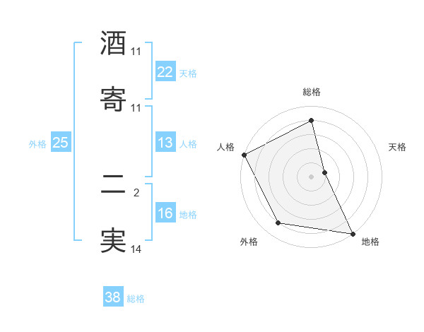 酒寄 二実さんを姓名の画数から五運を鑑定