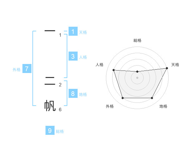 一 二帆さんの天格は1画の5点!