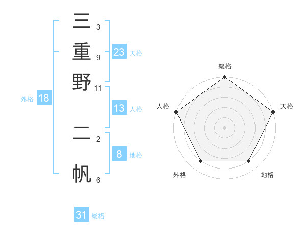 三重野 二帆さんを姓名の画数から五運を鑑定