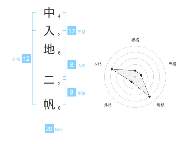 中入地 二帆さんの天格は12画の1点!