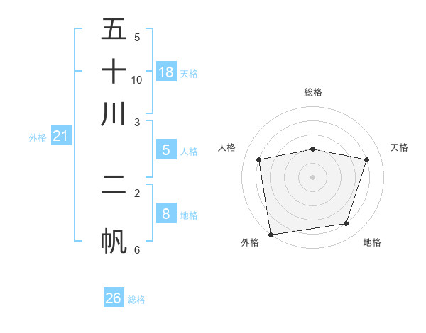 五十川 二帆さんを姓名の画数から五運を鑑定