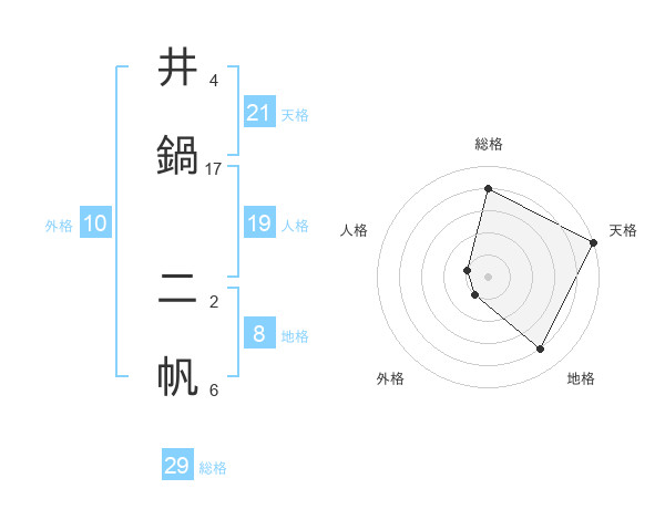 井鍋 二帆さんの総格は29画の4点!