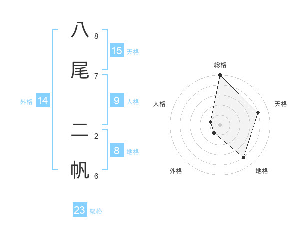 八尾 二帆さんの総格は23画の5点!