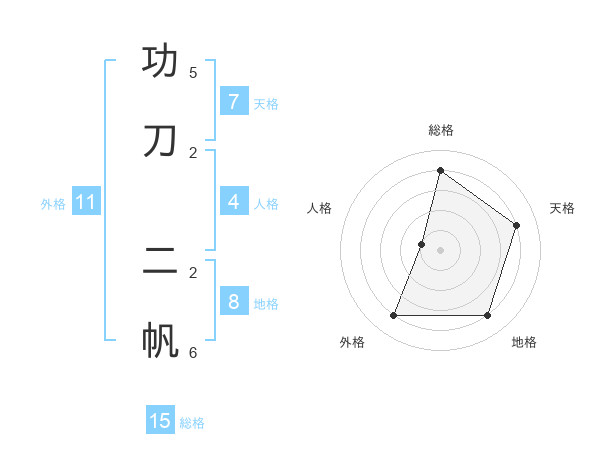 功刀 二帆さんの総格は15画の4点!