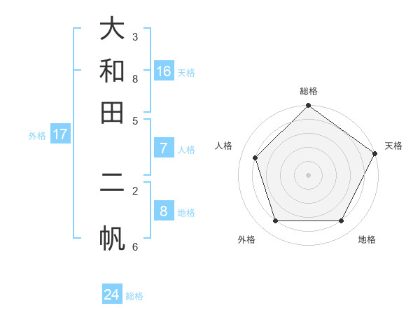 大和田 二帆さんを姓名の画数から五運を鑑定