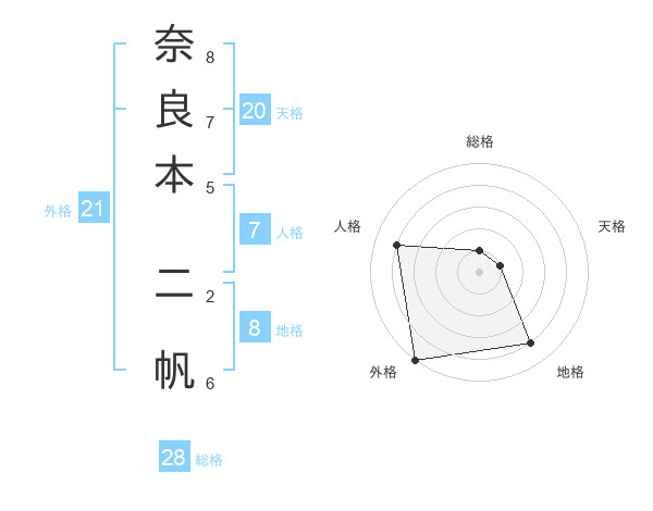 奈良本 二帆さんを姓名の画数から五運を鑑定