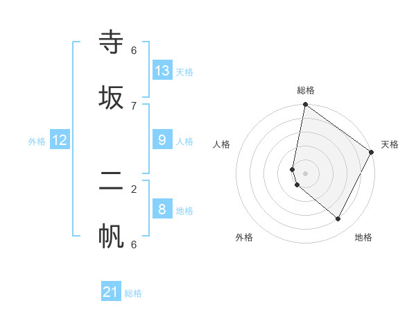 寺坂 二帆さんを姓名の画数から五運を鑑定