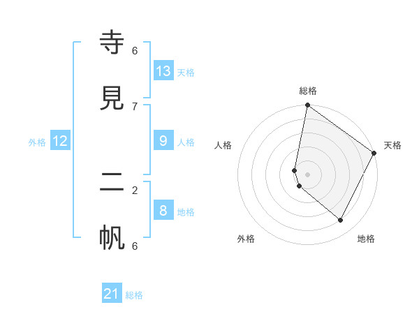 寺見 二帆さんを姓名の画数から五運を鑑定
