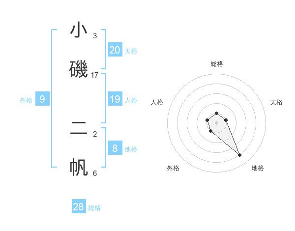 小磯 二帆さんを姓名の画数から五運を鑑定