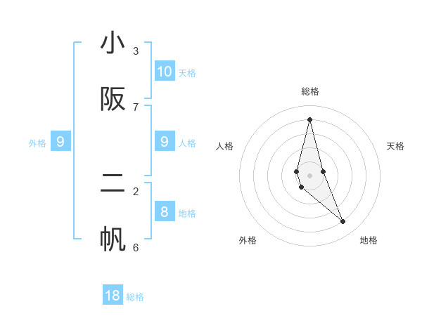 小阪 二帆さんを姓名の画数から五運を鑑定