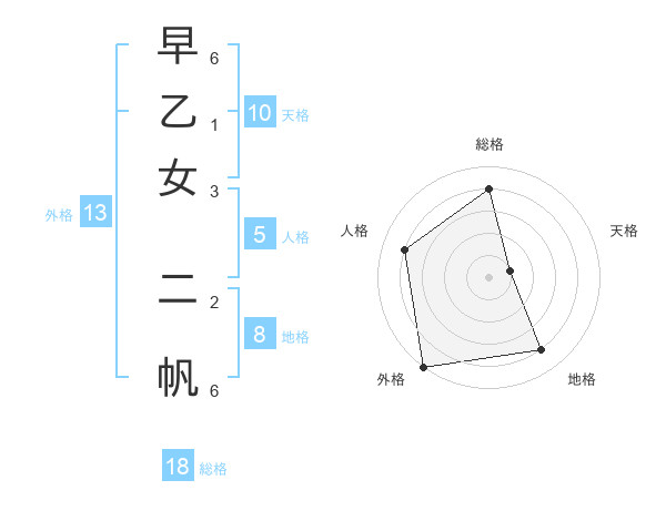 早乙女 二帆さんの外格は13画の5点!