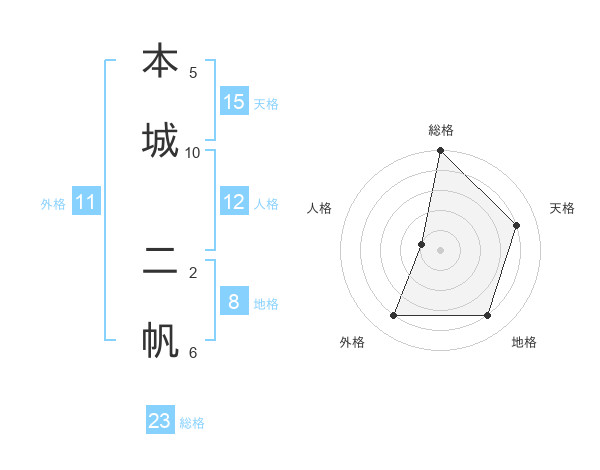 本城 二帆さんを姓名の画数から五運を鑑定