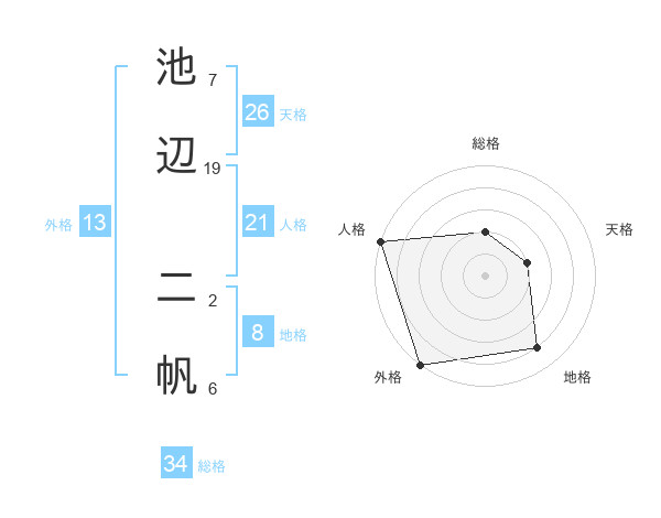 池辺 二帆さんを姓名の画数から五運を鑑定