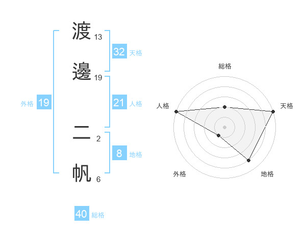 渡邊 二帆さんを姓名の画数から五運を鑑定