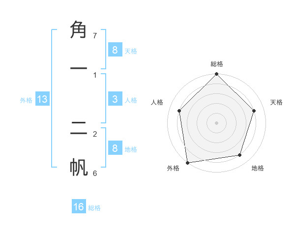 角一 二帆さんの地格は8画の4点!