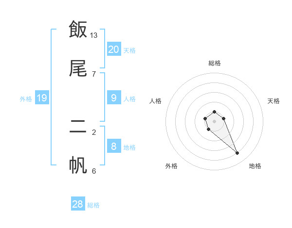 飯尾 二帆さんを姓名の画数から五運を鑑定