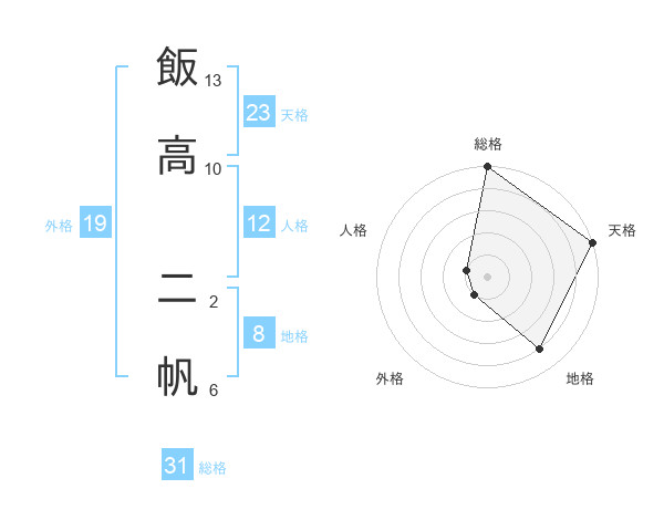 飯高 二帆さんの総格は31画の5点!