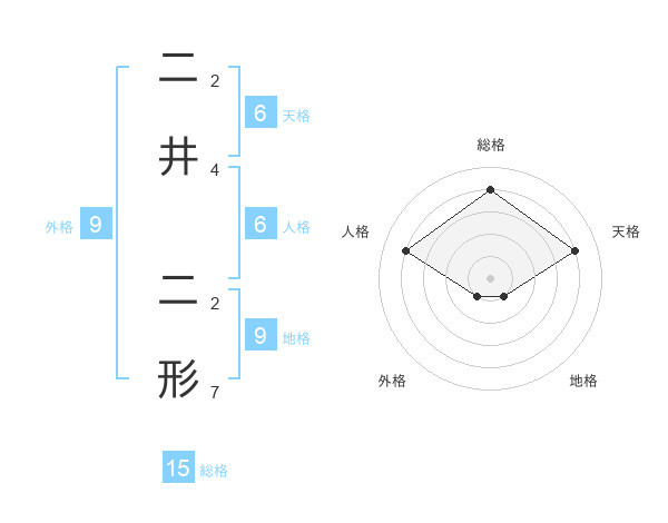 二井 二形さんの総格は15画の4点!