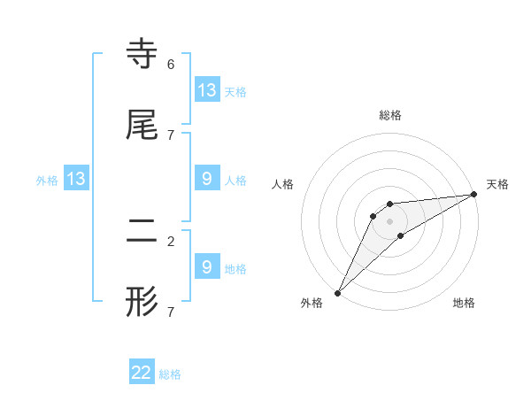 寺尾 二形さんを姓名の画数から五運を鑑定