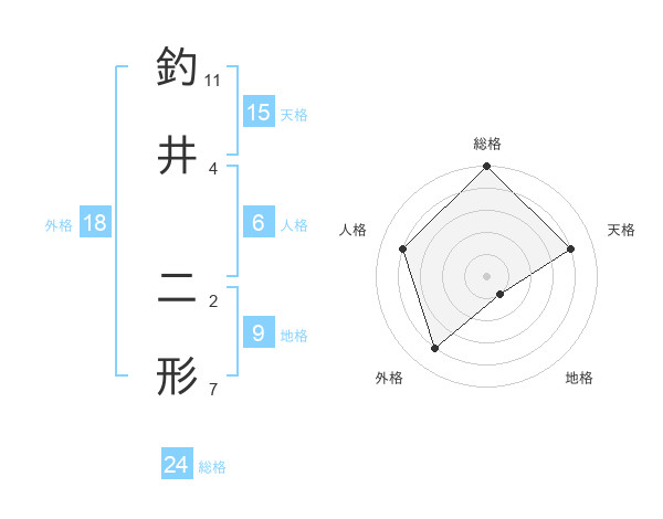 釣井 二形さんの総格は24画の5点!