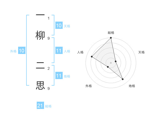 一柳 二思さんの総格は21画の5点!