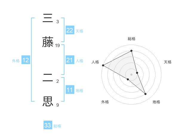 三藤 二思さんの天格は22画の1点!