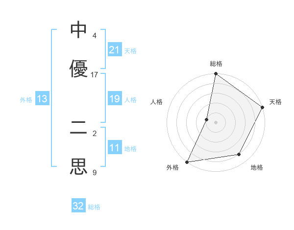 中優 二思さんの外格は13画の5点!