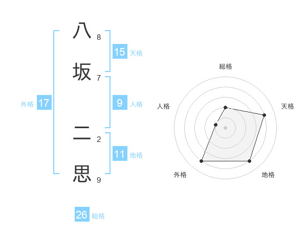 八坂 二思さんの天格は15画の4点!