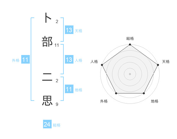 卜部 二思さんの天格は13画の5点!