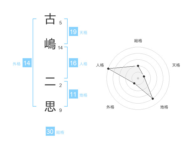 古嶋 二思さんを姓名の画数から五運を鑑定