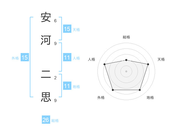 安河 二思さんの外格は15画の4点!