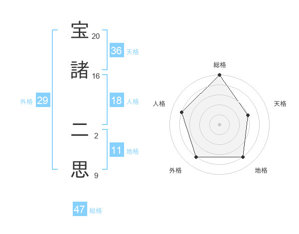 宝諸 二思さんの総格は47画の5点!
