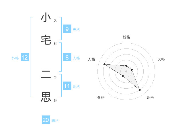 小宅 二思さんの総格は20画の1点!