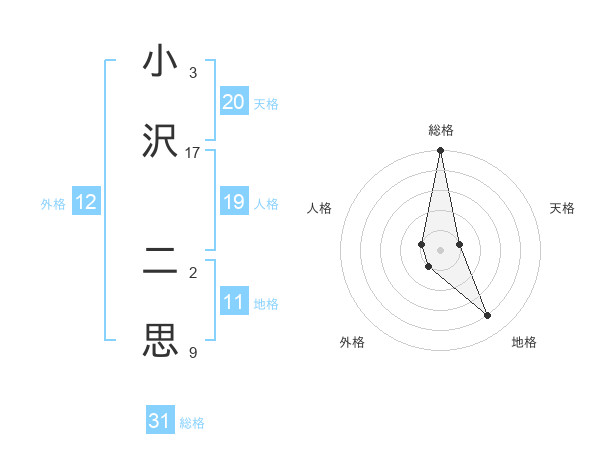 小沢 二思さんの天格は20画の1点!